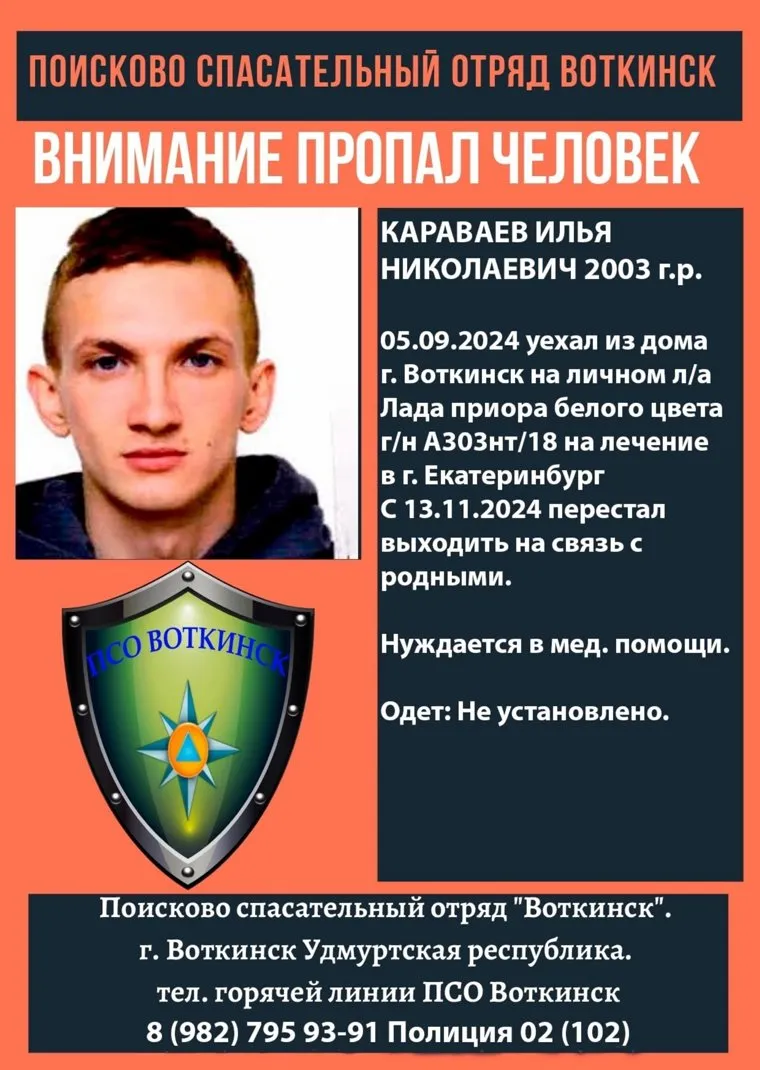 «Иван Караваев 5 сентября уехал из дома на личном автомобиле Lada Priora на лечение в Екатеринбург. С 13 ноября перестал выходить на связь с родными», — сообщали поисковики. 22 ноября стало известно о смерти молодого человека.