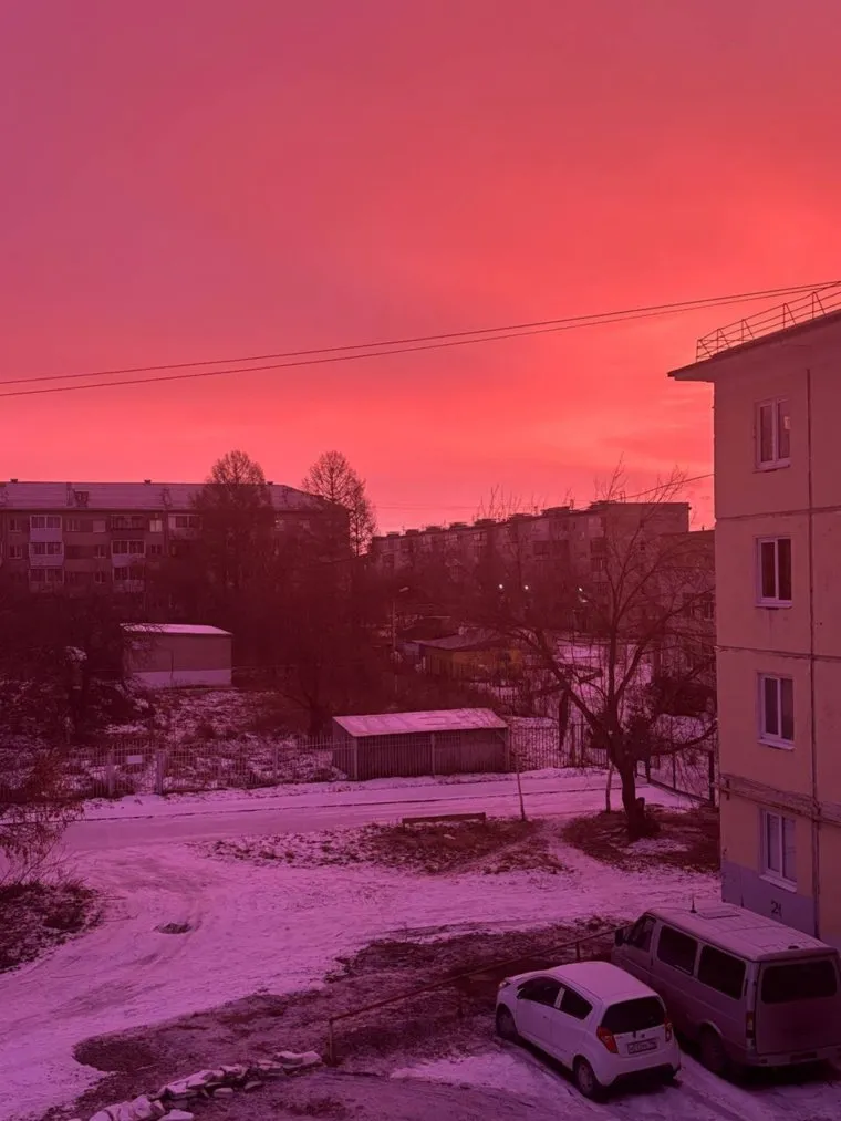 Небо в Свердловской области озарило загадочным розовым светом. Фото