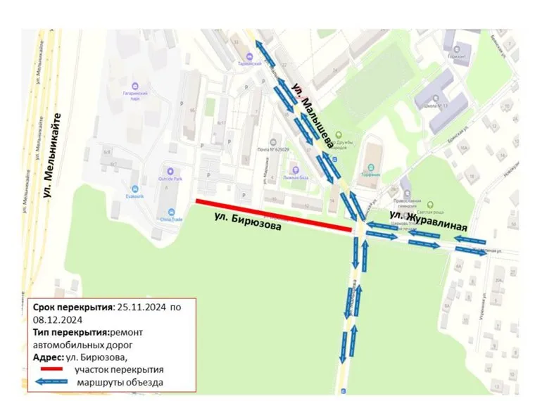 Возможные маршруты объезда: ул. Малышева, ул. Журавлиная.