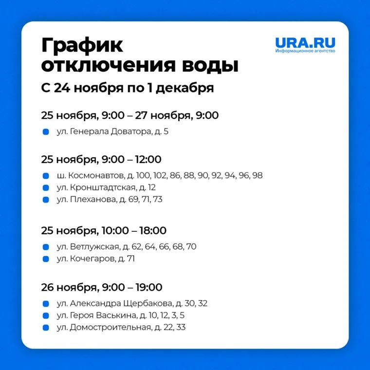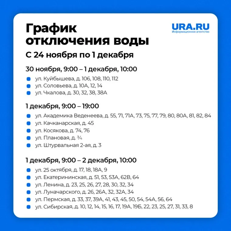 Пермяков предупредили об отключении воды в ноябре и декабре: инфографика URA.RU