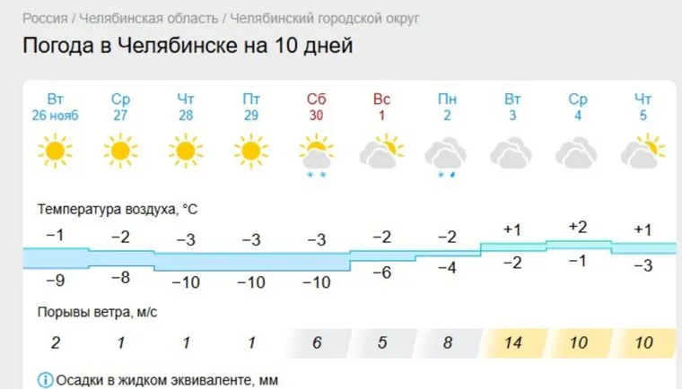 Температура воздуха днем в Челябинске на предстоящей неделе будет чуть ниже нуля