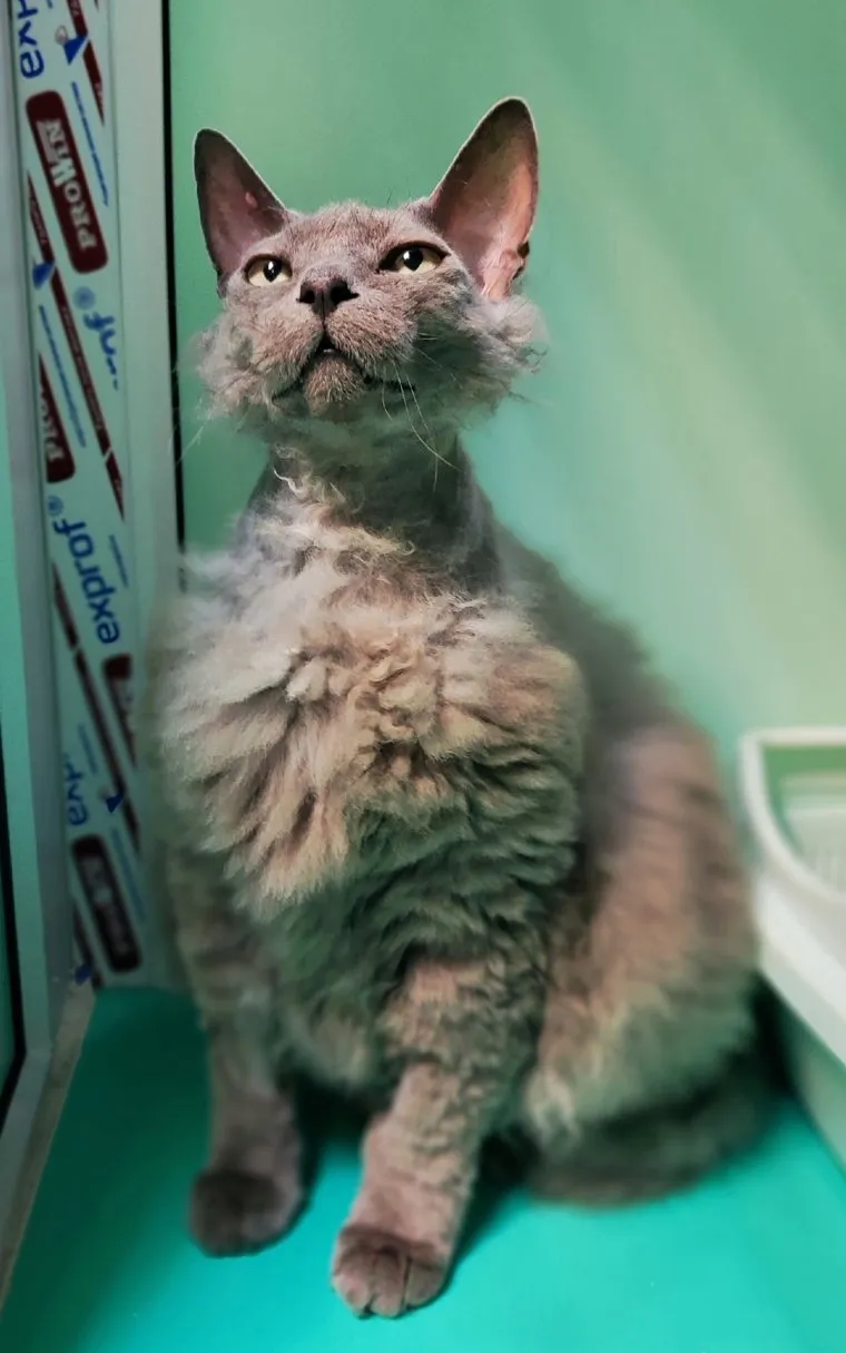 «Пончо — сфинкс в одежде! Со своей хозяйкой будет всегда рядом, а теплой шубой может и отогреть замерзшие коленки. Пончо очень ласковый, нежный и чувствительный котик. У него настолько нежная душа, что при каждом резком изменении в жизни он очень пугается. Поэтому ему нужна спокойная домашняя обстановка и заботливая хозяйка», — рассказали волонтеры приюта.