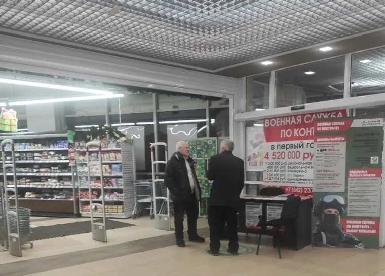 В Перми сеть пунктов набора на контрактную службу в армию расширилась на продуктовые сети. Одна из точек открылась в ТЦ «Квартет» около входа на территорию продуктового супермаркета «Лента», передает корреспондент URA.RU.