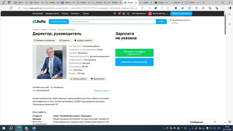 Бывший челябинский замминистра ищет работу директором на доске объявлений. Скрин