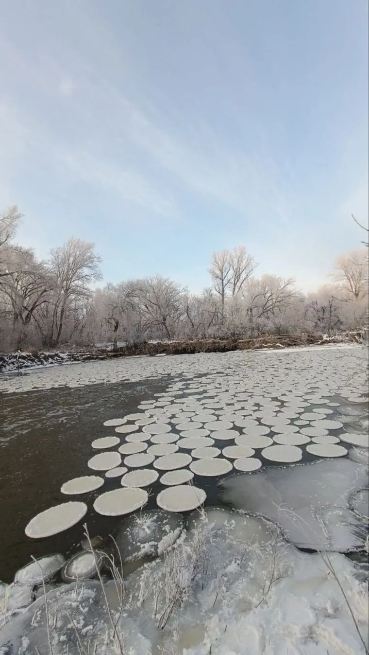 «Ледяные блинчики были замечены на реке в Притобольном округе. Они появились рядом с селом Глядянское», — рассказал читатель.