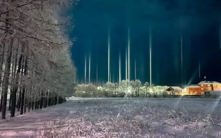 Жители Салехарда наблюдали редкое природное явление — столбы света, которые образуются в безветренную погоду из-за взвеси кристаллов льда в воздухе. Об этом местные жители сообщили в социальных сетях.