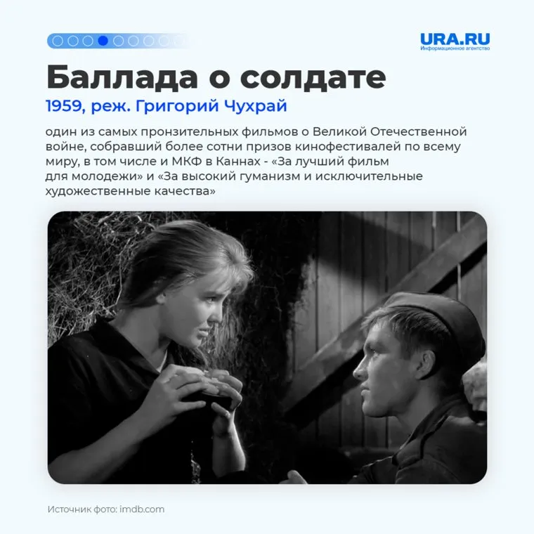 «Баллада о солдате»» — фильм выделяет простой, честный сюжет, художественно достоверные сцены.