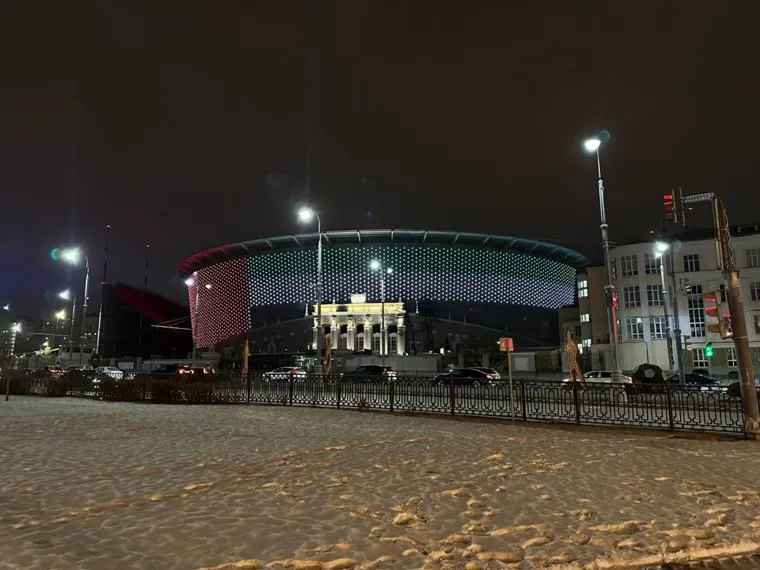 Екатеринбург Арена в цветах флага ОАЭ
