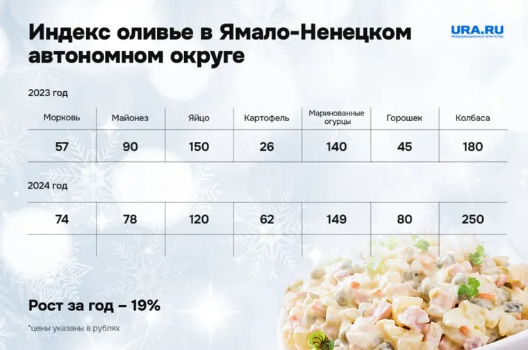 В ЯНАО значительно подорожали продукты для оливье. Инфографика