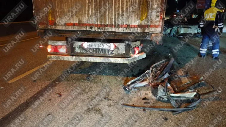 В Екатеринбурге на Кольцовском тракте в фуру Man вечером 2 декабря врезался ехавший попутно Renault. Очевидцы происшествия сообщили URA.RU, что грузовой автомобиль выехал с шиномонтажной мастерской, где недавно менял колеса.