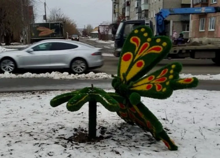«Наши подрядчики не перестают восстанавливать сломанные арт-объекты, скульптуры, топиарии. Не успели они отремонтировать „бабочку“ на аллее по Свердлова, как спустя неделю кто-то вновь решил ей „обломать крылья“, — сообщили в администрации Шадринска.