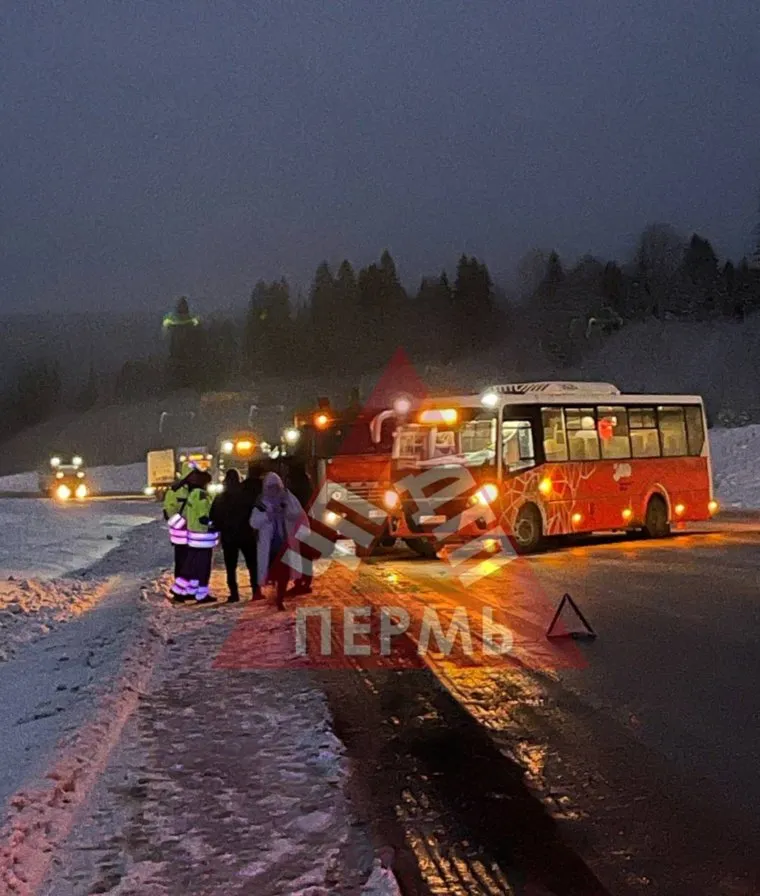 «ДТП с автобусом, следовавшим из Горнозаводска в Пермь. Обошлось без жертв», — написал автор поста.