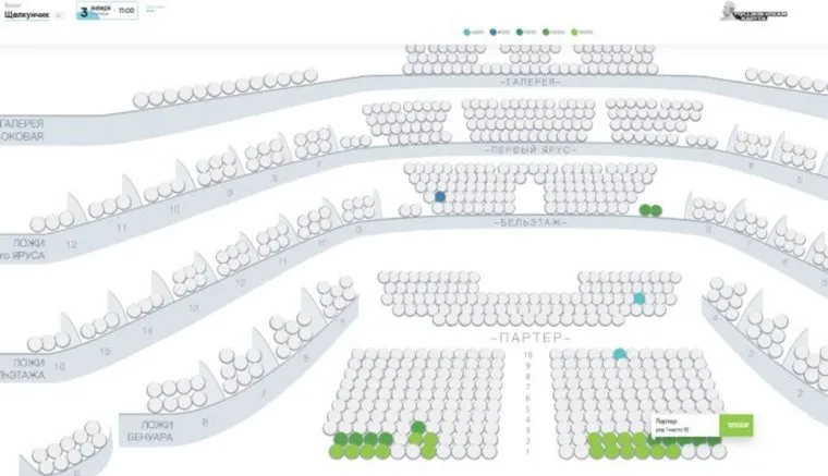 Балет в трех действиях на музыку Петра Чайковского покажут с 3 января два раза в день. Судя по количеству свободных мест, постановка пользуется спросом даже после Нового года. Билеты на дневной сеанс в партере обойдутся в 12 тысяч рублей, в бельэтаже — за 8000 и 10 тысяч рублей. На вечерний показ в этот же день партер дорожает до 15 тысяч рублей. Аналогичная ситуация складывается 5 и 7 января. Дешевле всего билеты в партере 10-го числа: там есть место в первом ряду всего за 5000 рублей.