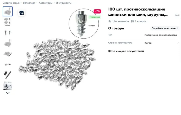 Еще один вариант — вкрутить в подошву обуви шпильки для велосипедных шин. В отличие от «кошек», потерять во время ходьбы их будет сложнее. Но, если шипы убрать, на подошве обуви останутся следы. Найти в пермских магазинах корреспонденту агентства их не удалось, но на маркетплейсах упаковку, в которой сто шпилек, продают за 700-800 рублей.