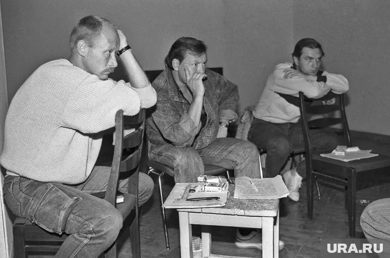 Актеры Виктор Проскурин, Юрий Демич и Александр Балуев (слева направо) во время читки пьесы «Прощай, Иуда...»