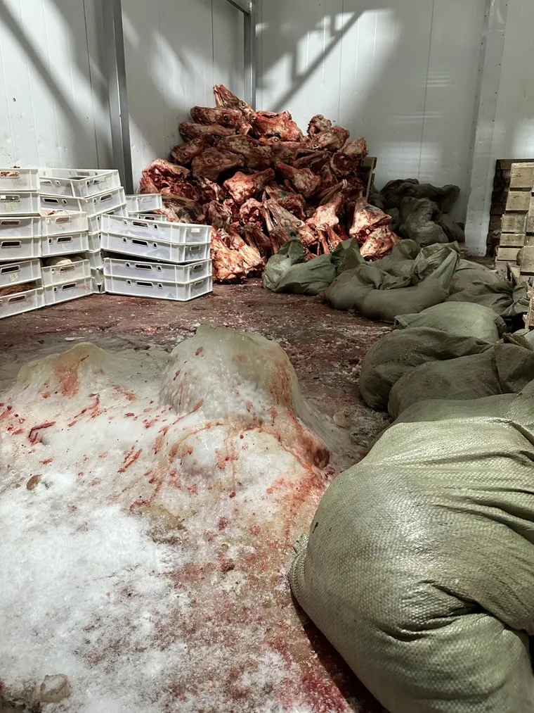«В морозильной камере убойного пункта ООО „Эверест“ выявлена продукция неизвестного происхождения общим весом 3,9 тонны. Продукция была размещена навалом на полу, а также в мешках и ящиках, которые не имели маркировки и дат выработки, информация о проведении ветеринарно-санитарной экспертизы отсутствовала», — сообщили в ведомстве.