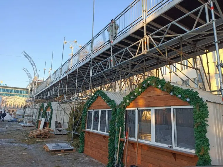 В настоящее время каток на площади еще заливают. Степень его готовности около 80%.
