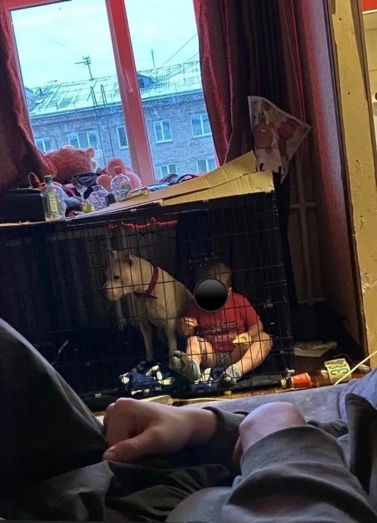 В Перми мать посадила ребенка в клетку с собакой. Фото, видео