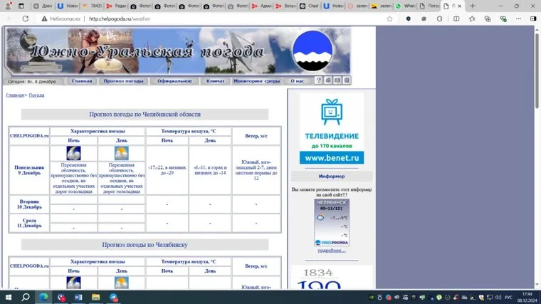 - Александр09 декабря 2024 18:22Ну, во первых, скрин не Гисметео, а Челябинского Гидрометцентра. А во вторых, никого не смутило, что на вторник и среду стоят прочерки? Так вот это потому, что сотрудники гидрометцентра в пятницу сделали прогноз, и со спокойной душой пошли на выходные. А в воскресенье Вы берете прогноз, которому уже 2 дня, и выкладываете его.