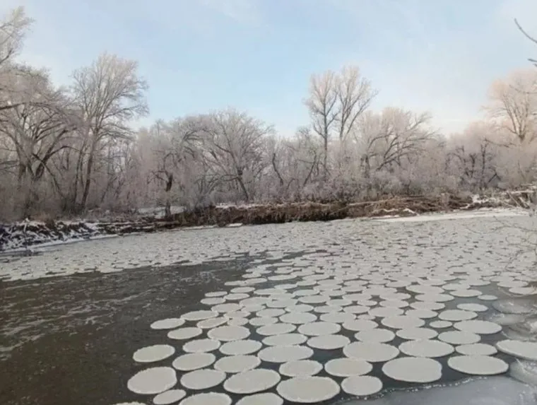 Это редкое природное явление, которое происходит, когда температура воздуха опускается ниже нуля градусов, а вода в реке еще не замерзла полностью. Первые тонкие слои льда ломаются под воздействием течения или ветра, образуя небольшие кусочки, которые благодаря течению начинают вращаться и обретать форму дисков.