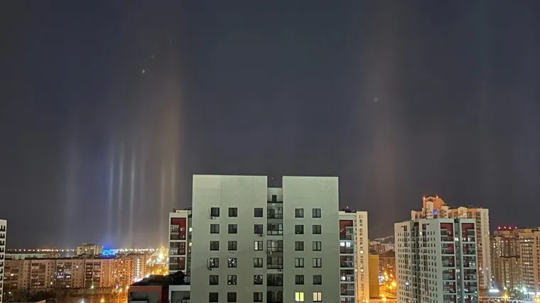 Тюменцам объяснили, откуда взялись световые столбы над городом. Фото
