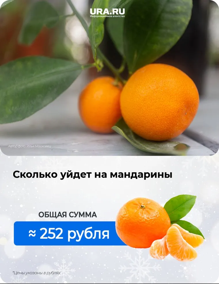 Средняя цена за килограмм мандаринов на декабрь 2024 года — 252 рубля