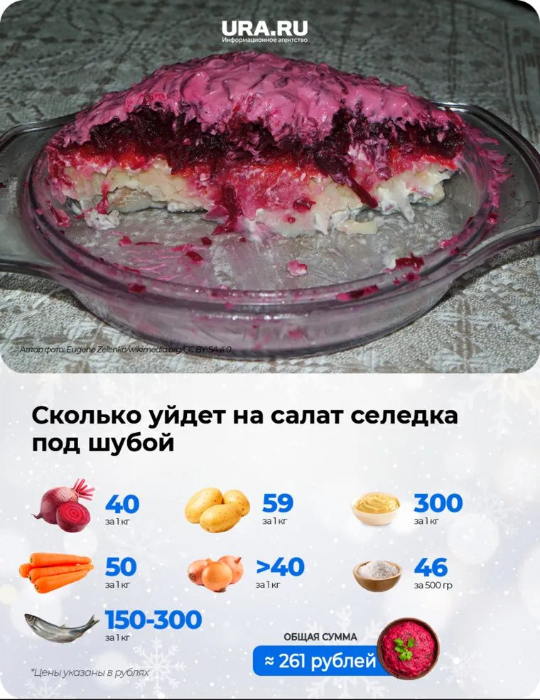 На четверых человек «Селедка под шубой» будет стоить примерно в 261 рубль