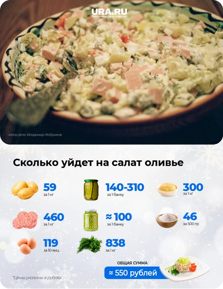 Салат «Оливье» на четверых обойдется в чуть более 550 рублей