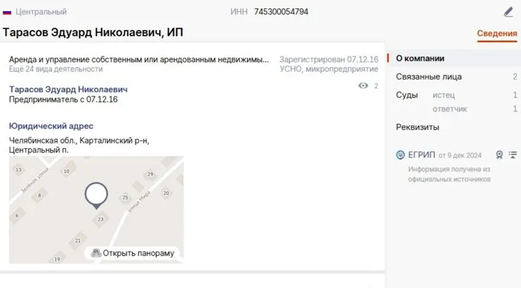 На новом посту Тарасов долго не задержался и уже к концу 2015 года решил попытать счастья в Москве . Однако уже через год зарегистрировался как индивидуальный предприниматель в Карталинском районе, избрав сферой деятельности аренду и управление недвижимостью вкупе с юридическими услугами. Также он успел стать учредителем (и выйти из учредителей) Российского Военно-Исторического Общества Города-Курорта Сочи и проиграть суд мэрии Челябинска за земельный участок в Тракторозаводском районе. Еще одна тяжба продолжается: власти областного центра добились взыскания с бизнесмена почти 1,5 млн рублей в счет задолженности по арендным платежам. Сейчас процесс идет в апелляционной инстанции.