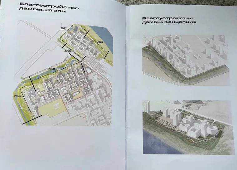 Дамба в микрорайоне также преобразится. На ней появятся пешеходные тропинки, велодорожки, арт-объекты и другая инфраструктура. Один из участков благоустроят в 2025 году, полноценное изменение закончится к 2029 году.