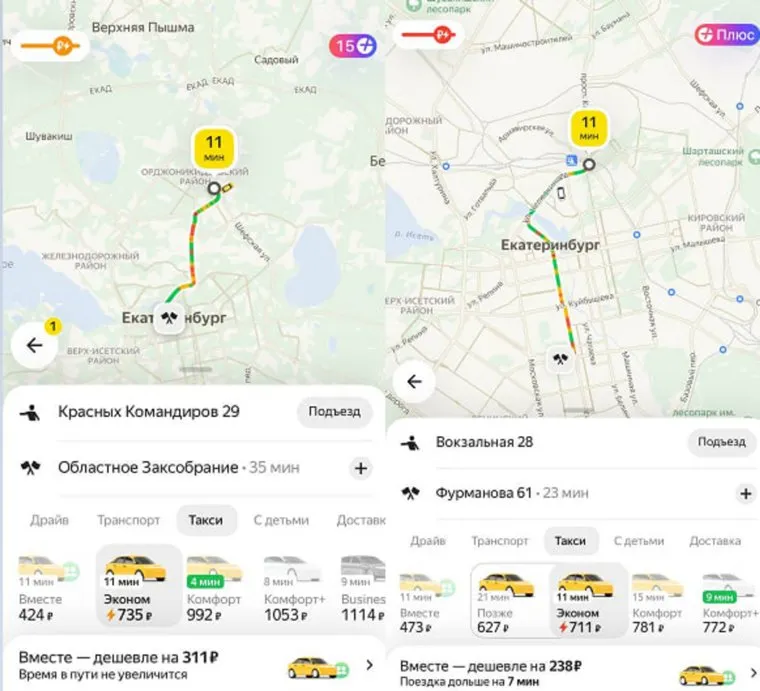 «Поездка от Эльмаша до центра резко подорожала на 200 рублей, а саму машину агрегатор предлагает ждать порядка десяти минут и дольше», — сказал собеседник. По словам другого, проехаться от железнодорожного вокзала до Южного Автовокзала стало дороже, чем обычно, на 300 рублей.