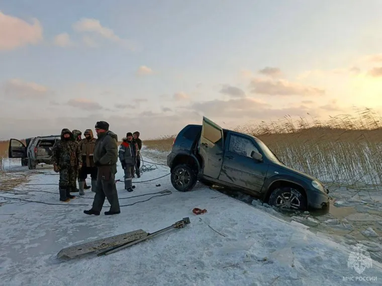 Тюменские спасатели вызволили автомобиль, угодивший под лед. Фото