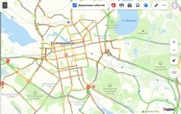 Согласно картам, сложная ситуация на проспекте Космонавтов от станции метро «Уралмаш» в сторону Челюскинцев. Стоят автомобилисты на Советской от Уральской до Карла Либкнехта. Серьезный затор на Владимира Высоцкого и Малышева в сторону центра, стоит Московская, Репина, Шаумяна. Читатели URA.RU сообщают, что с трудом выезжают с Широкой речки, движение по Суходольской очень медленное.