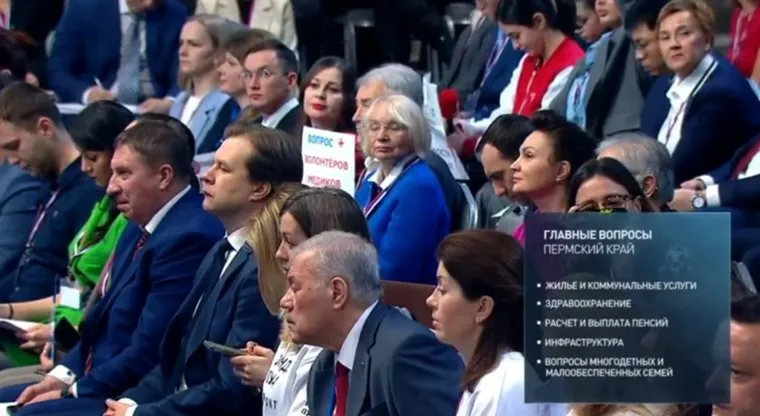«Пермский край. Главные вопросы: жилье и коммунальные услуги, здравоохранение, расчет и выплата пенсий, инфраструктура, вопросы многодетных и малообеспеченных семей», — следует из трансляции.