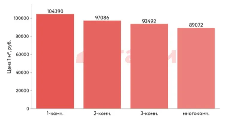 Средняя цена квартир на вторичном рынке в зависимости от количества комнат
