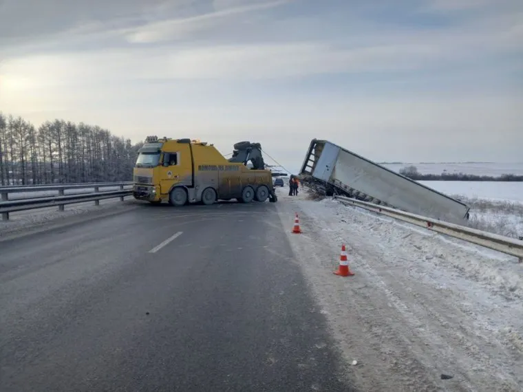 Фуру пытаются достать из кювета