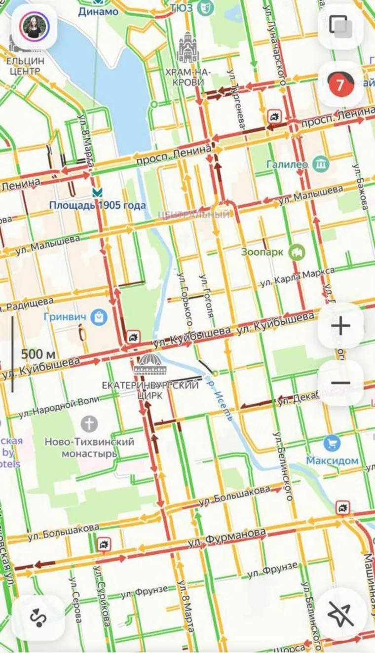 Судя по «Яндекс. Картам», на оживленных участках случилось восемь аварий. Речь идет об улицах Ушакова, Мамина-Сибиряка, Карла Либкнехта и другие.