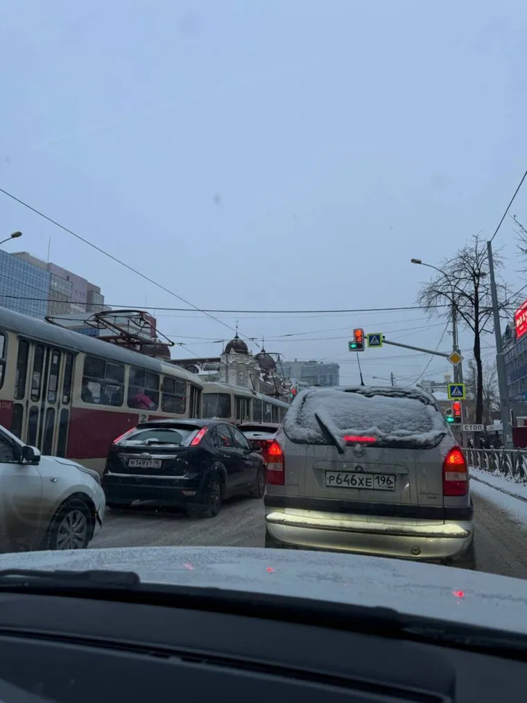 Центр Екатеринбурга встал в пробки из-за снегопада. Скрин