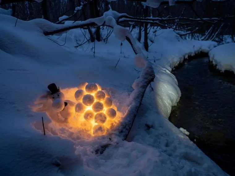 Жители Пермского края слепили снежные фонари в самую длинную ночь в году. Фото