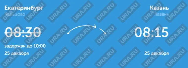 Рейс Екатеринбург-Казань также задержали до 10:00