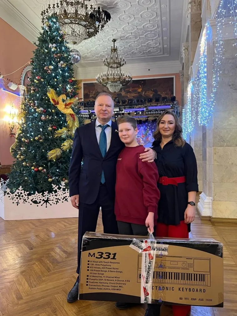 «По всей России в декабре проходит акция „Елка желаний“, и у нас в Совете Федерации мне достался шар с желанием прекрасного, активного и позитивного шестнадцатилетнего парня — мечта о синтезаторе. Нашли именно ту модель, которую выбрал Арсений, в торжественной обстановке в ДК им. Окунева вручили законному владельцу», — поделился сенатор.