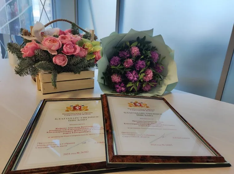 Депутат законодательного собрания Свердловской области Алексей Свалов вручил сотрудницам Фонда святой Екатерины награды за активную деятельность в области благотворительности. Благодарственные письма от председателя заксо Людмилы Бабушкиной получили заместитель директора Татьяна Прусевич и руководитель благотворительных проектов Анастасия Жуйкова. Как пояснили URA.RU в пресс-службе Фонда, в годы пандемии COVID-19 сотрудницы отвечали за оказание помощи больницам и соцслужбам.