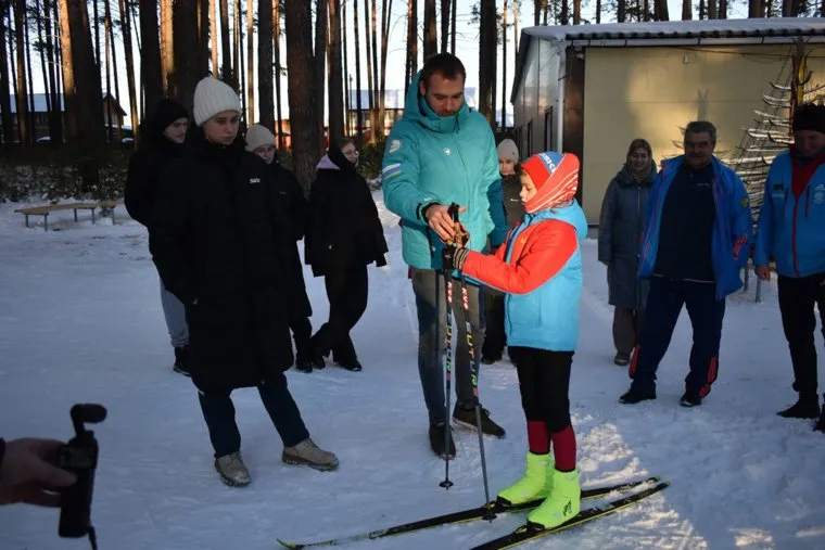 Спортсмен подарил мальчику лыжные ботинки и роллеры, а после провел небольшую тренировку. Встреча прошла в детско-юношеской спортивной школе.