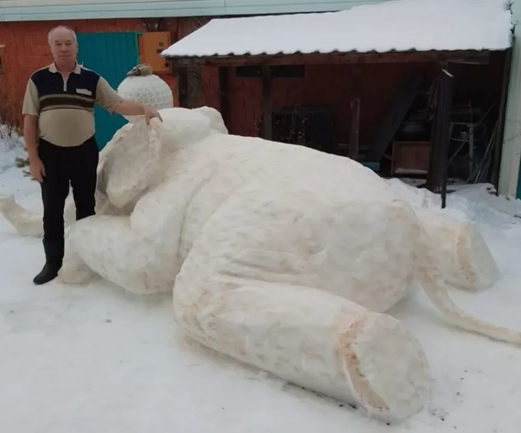 «Владимир Рылов из Куртамыша продолжает удивлять своими творениями. В прошлом году он создал из снега автомобиль, танк и гигантского змея, а в этом — сотворил огромного снежного слона», — сообщает газета «Куртамышская нива» в группе «ВКонтакте». К сообщению прикреплено фото скульптуры.