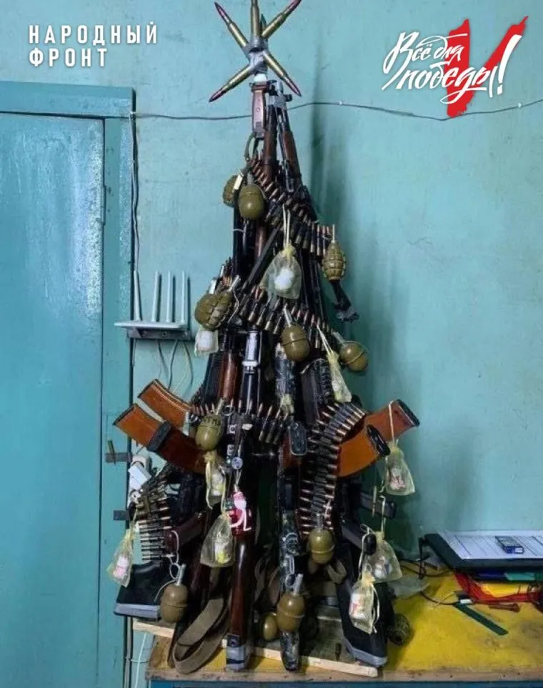 Участники СВО из Ханты-Мансийского автономного округа сделали необычную елку на передовой, чтобы создать себе праздничное настроение. Символ Нового года собрали из оружия, гранат и патронов, сообщил telegram-канал Народного фронта ХМАО.
