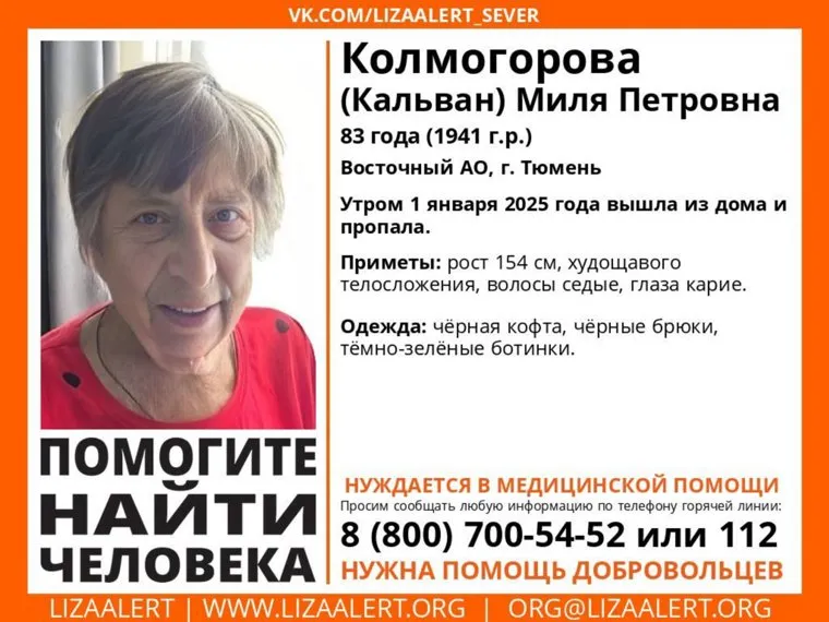 «Заявка на поиск женщины поступила на горячую линию поисково-спасательного отряда „ЛизаАлерт“ 1 января 2025 года днем и сразу взята в работу. Миля Петровна пропала в Восточном районе Тюмени. Женщине 83 года, она нуждается в медицинской помощи. По данным на 15:30 ч на место поиска готовятся к выезду добровольцы ДПСО „ЛизаАлерт“», — сообщили URA.RU в отряде.