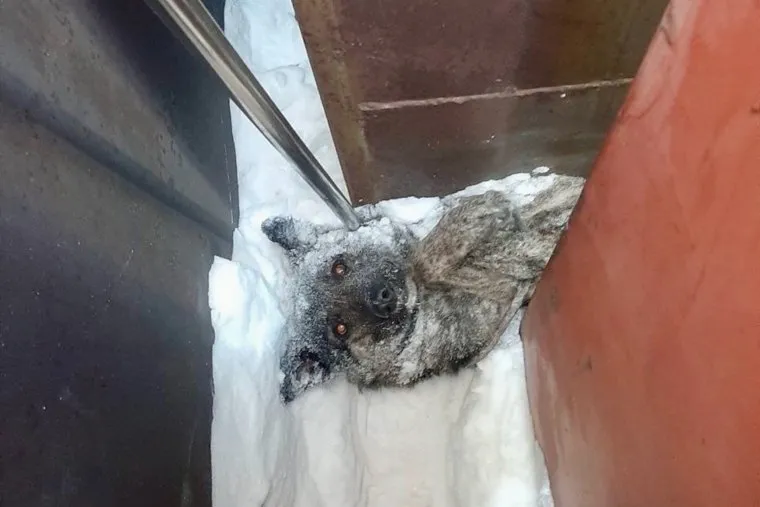 Собака осталась невредимой и позже поблагодарила спасателей