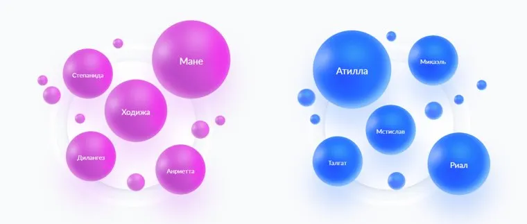 Среди редких имен для тюменских мальчиков зарегистрированы: Атилла, Риал, Микаэль, Талгат, и Мстислав. Для девочек — Мане, Ходижа, Степанида, Дилангез и Анриетта.