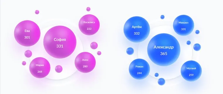 «В 2024 году новорожденных мальчиков чаще всего называли именами — Александр (365), Артем (332), Михаил (331), Матвей (259) и Роман (244). Среди имен девочек лидируют — София (331), Ева (301), Анна (280), Мария (268) и Василиса (222)», — следует из аналитических материалов.