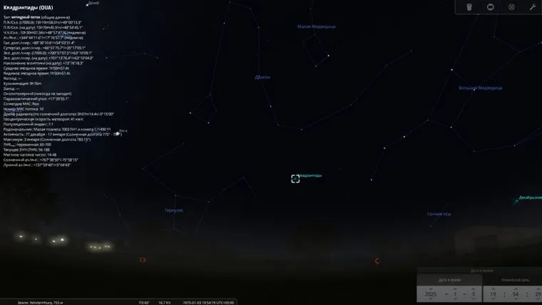 Этот звездопад станет первым в 2025 году. Свое название метеорный поток получил от созвездия Стенной Квадрант, которое в современной астрономии уже не используется.